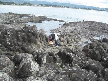 Spectacular columnar jointing South Beach Pauanui photo courtesy Chris Ball 2012 - above, below